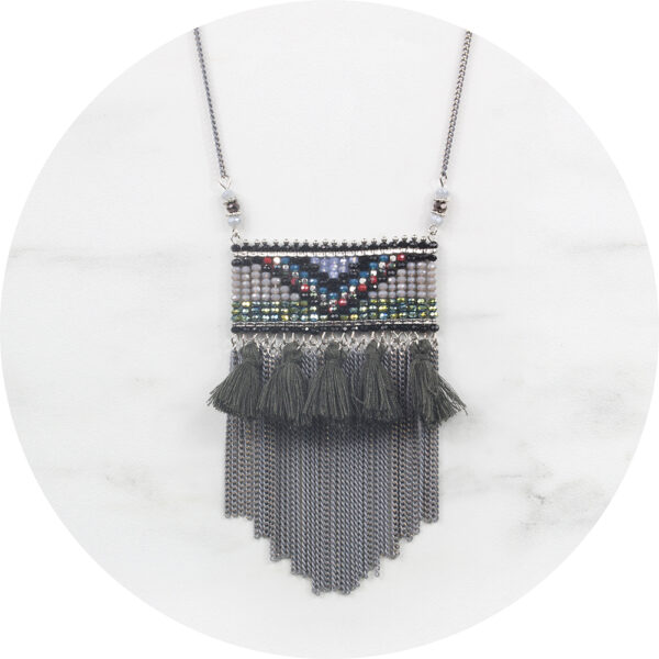 Ketting maan kwastjes donker grijs/zilver