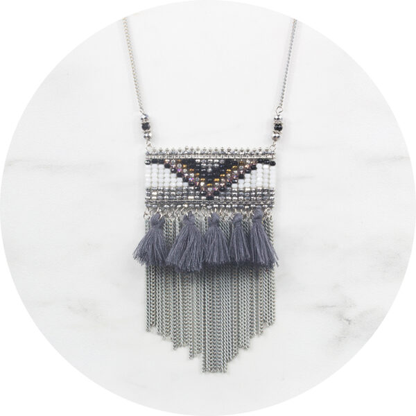 Ketting maan kwastjes grijs/zilver