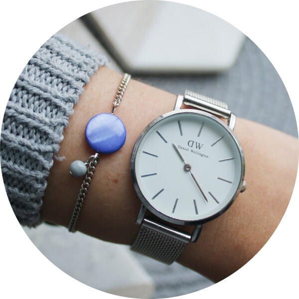Armband rond steentje donker blauw/grijs