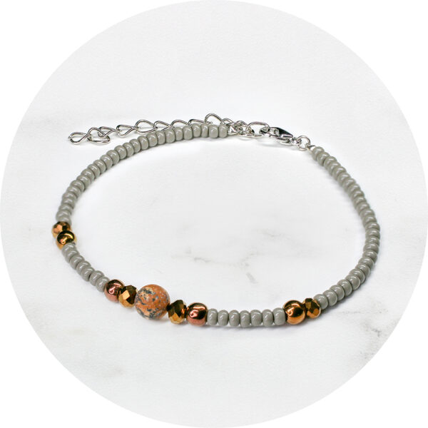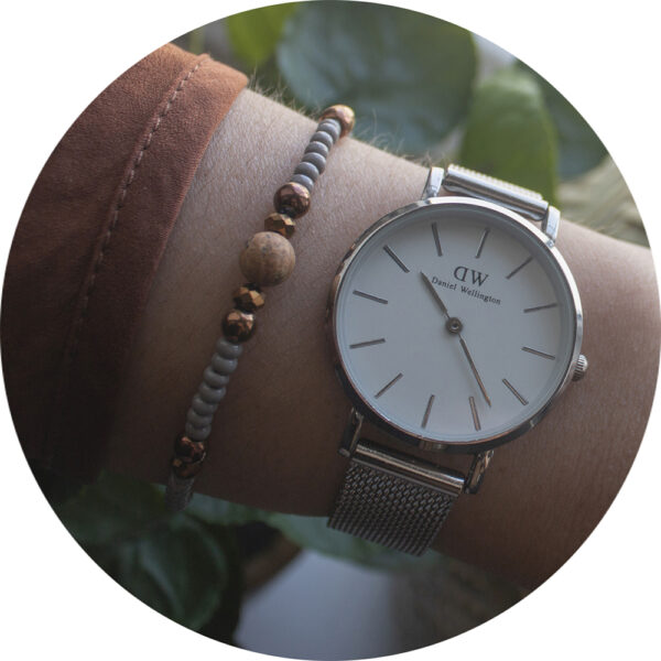 Armband rond steentje grijs/bruin