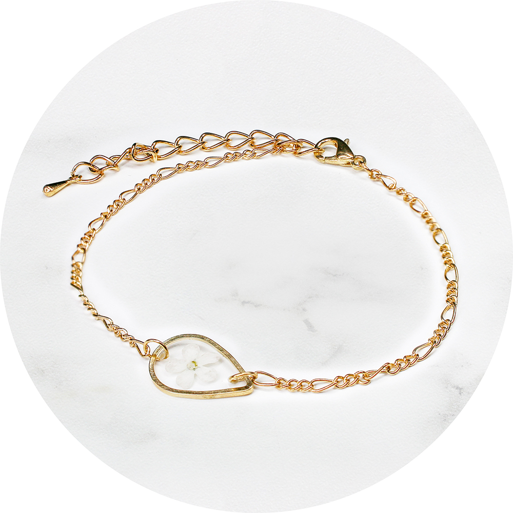 Het bijzondere aan de armband is dat het een echt bloemetje is.