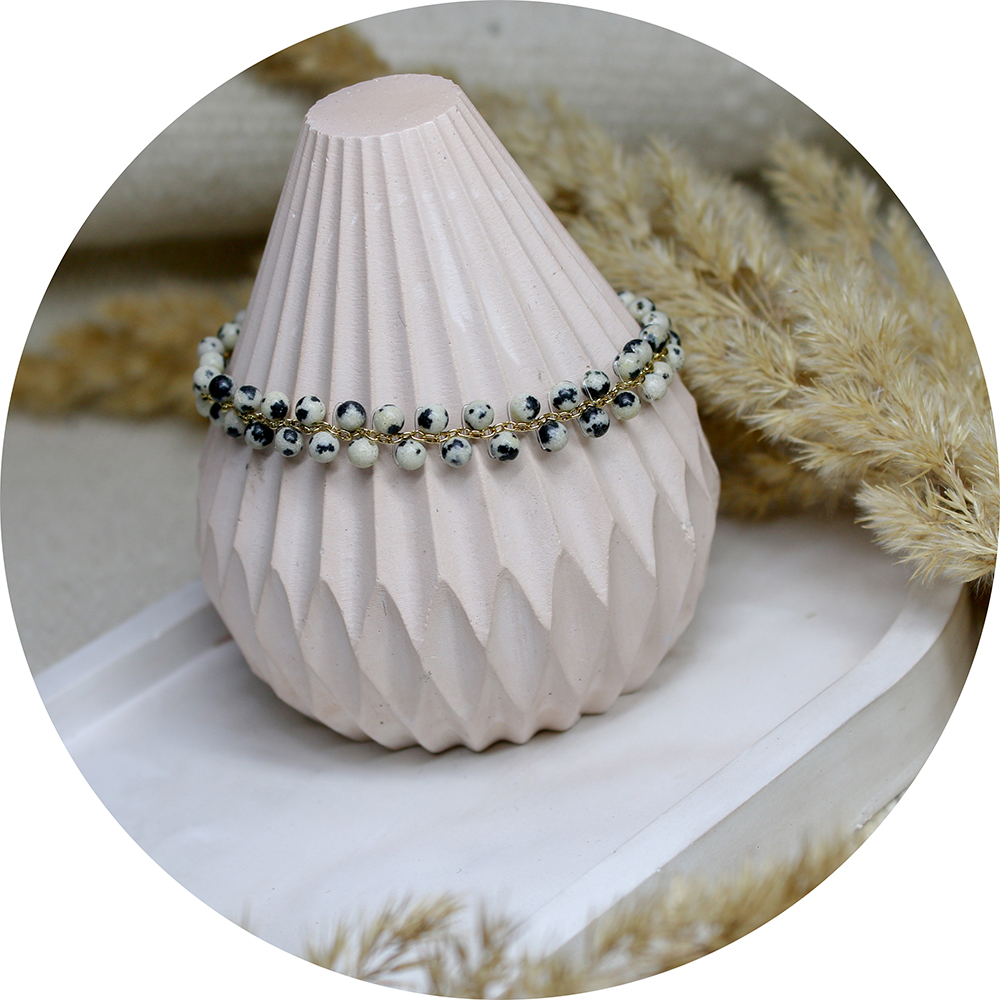 Wauw, hoe mooi is dit natuursteen armbandje met 3mm dalmatiër jaspis kralen.