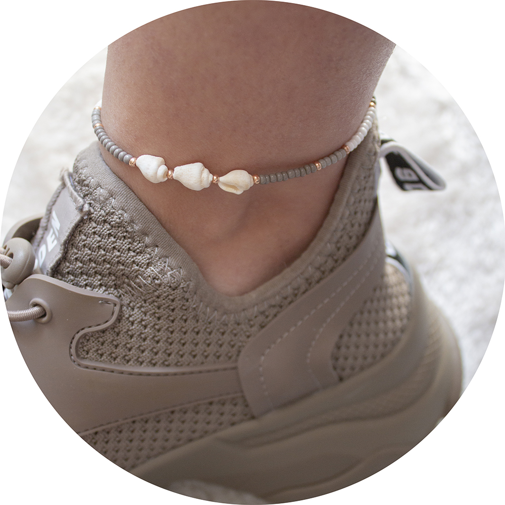 Enkelbandje rocailles & schelpjes grijs/zilver