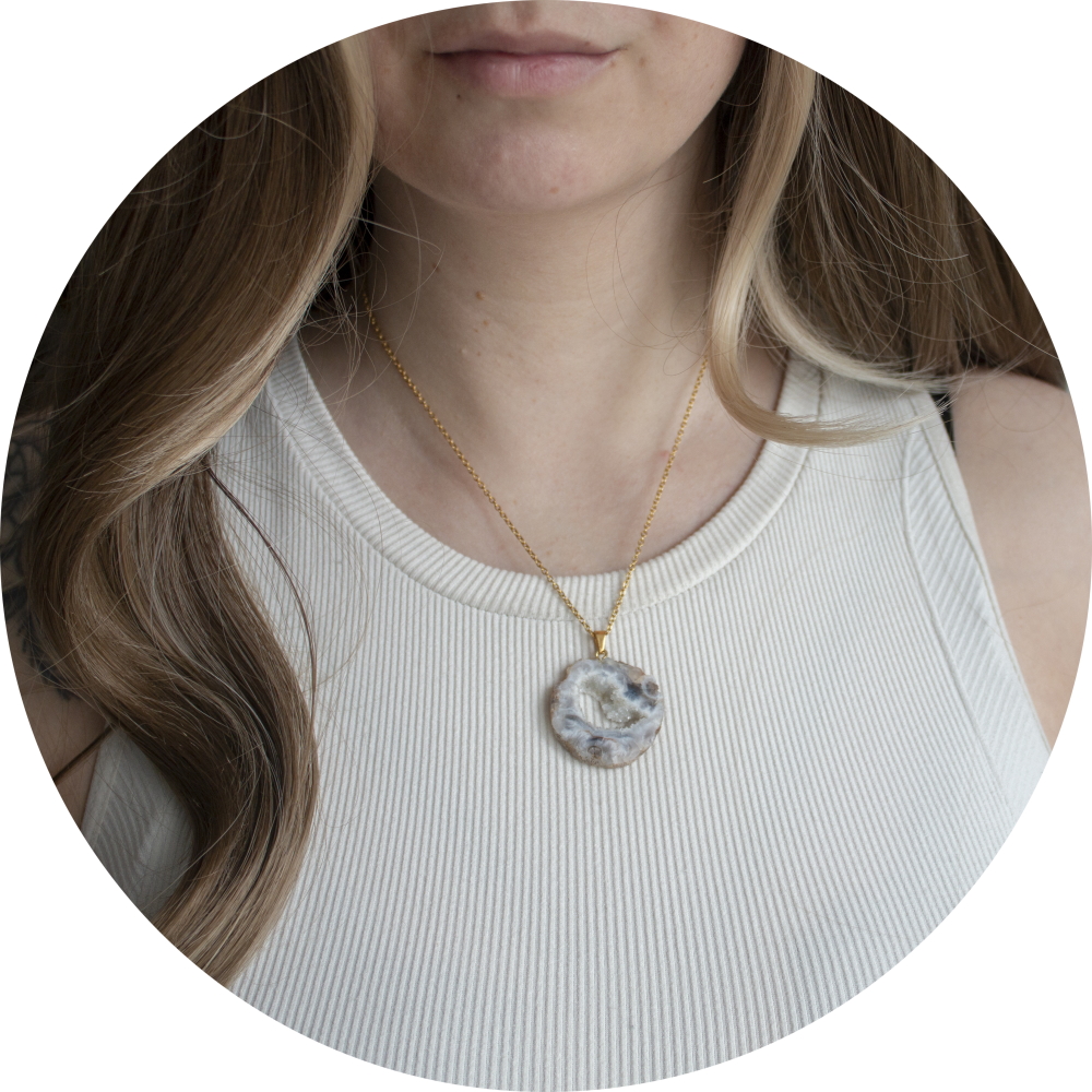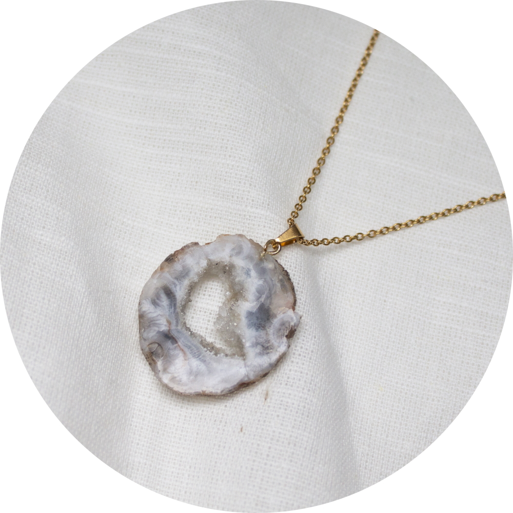 Hoe leuk is deze ketting met agaat geode edelsteen hanger!