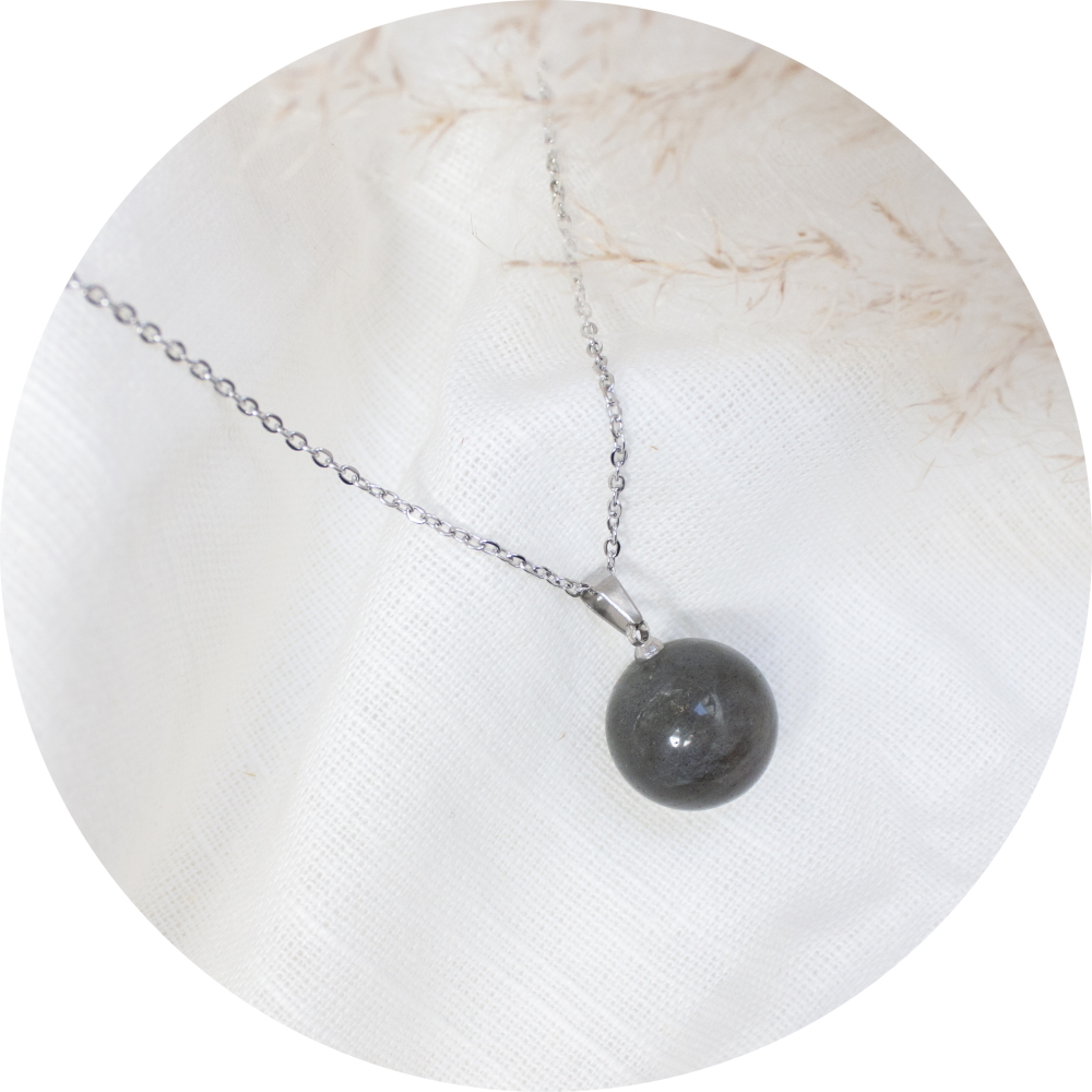 Hoe leuk is deze ketting met edelstenen labradoriet hanger in bolvorm.