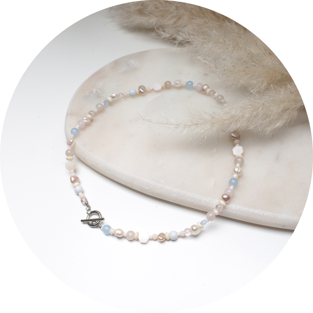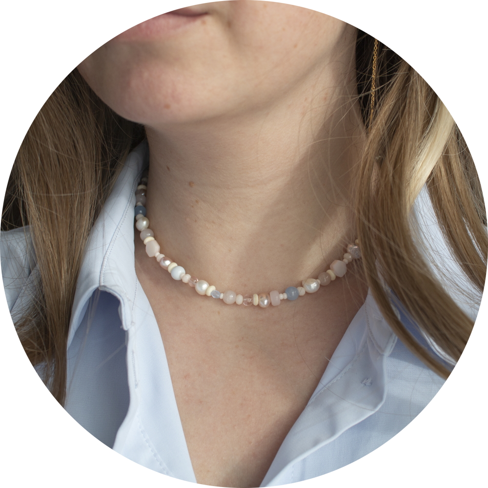 De Chloé ketting is gemaakt van hoogwaardige kralen zoals edelstenen, zoetwaterparels en de mooiste glaskralen.