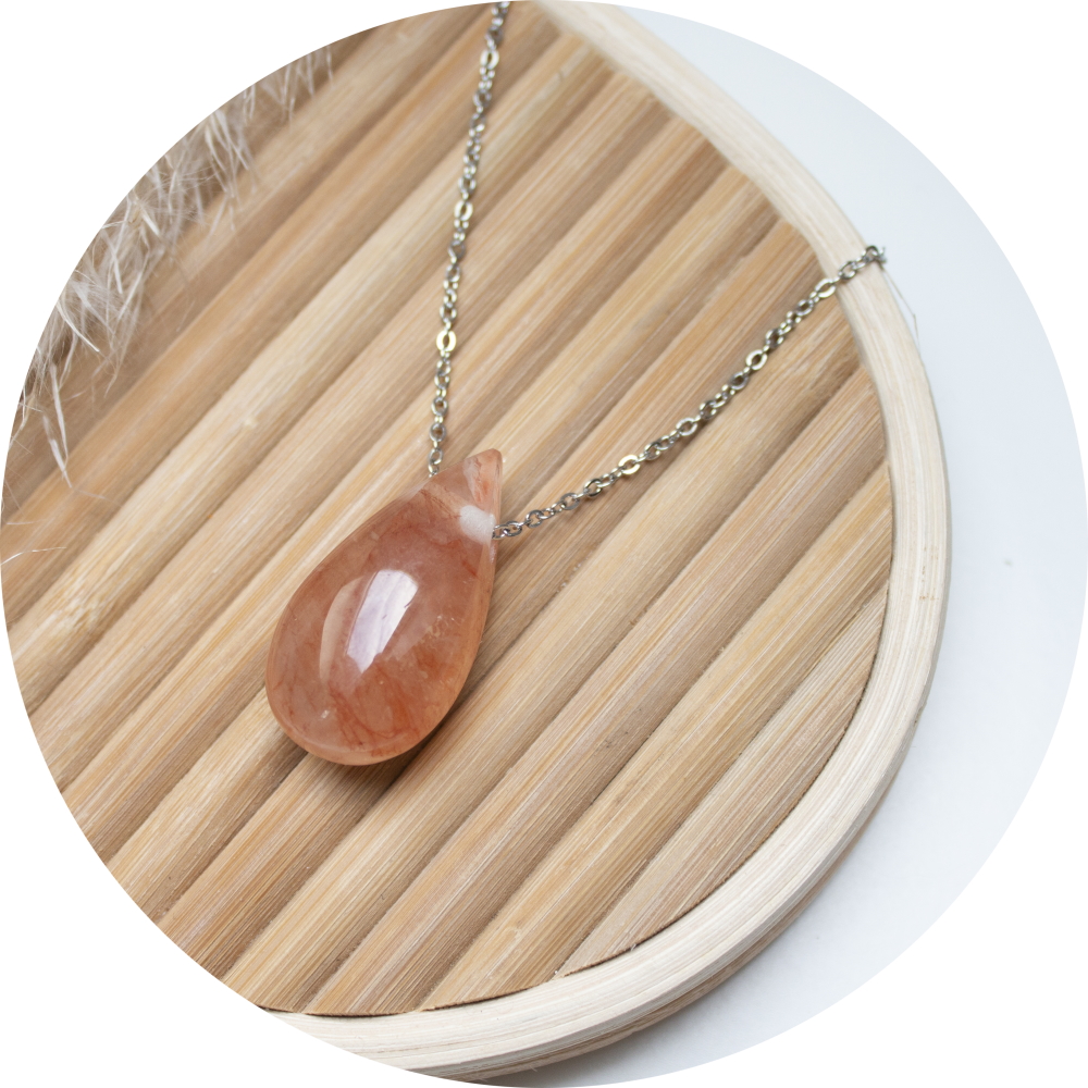 Deze hematoide kwarts (red healer) hanger heeft de vorm van een druppel en maakt je outfit helemaal compleet.