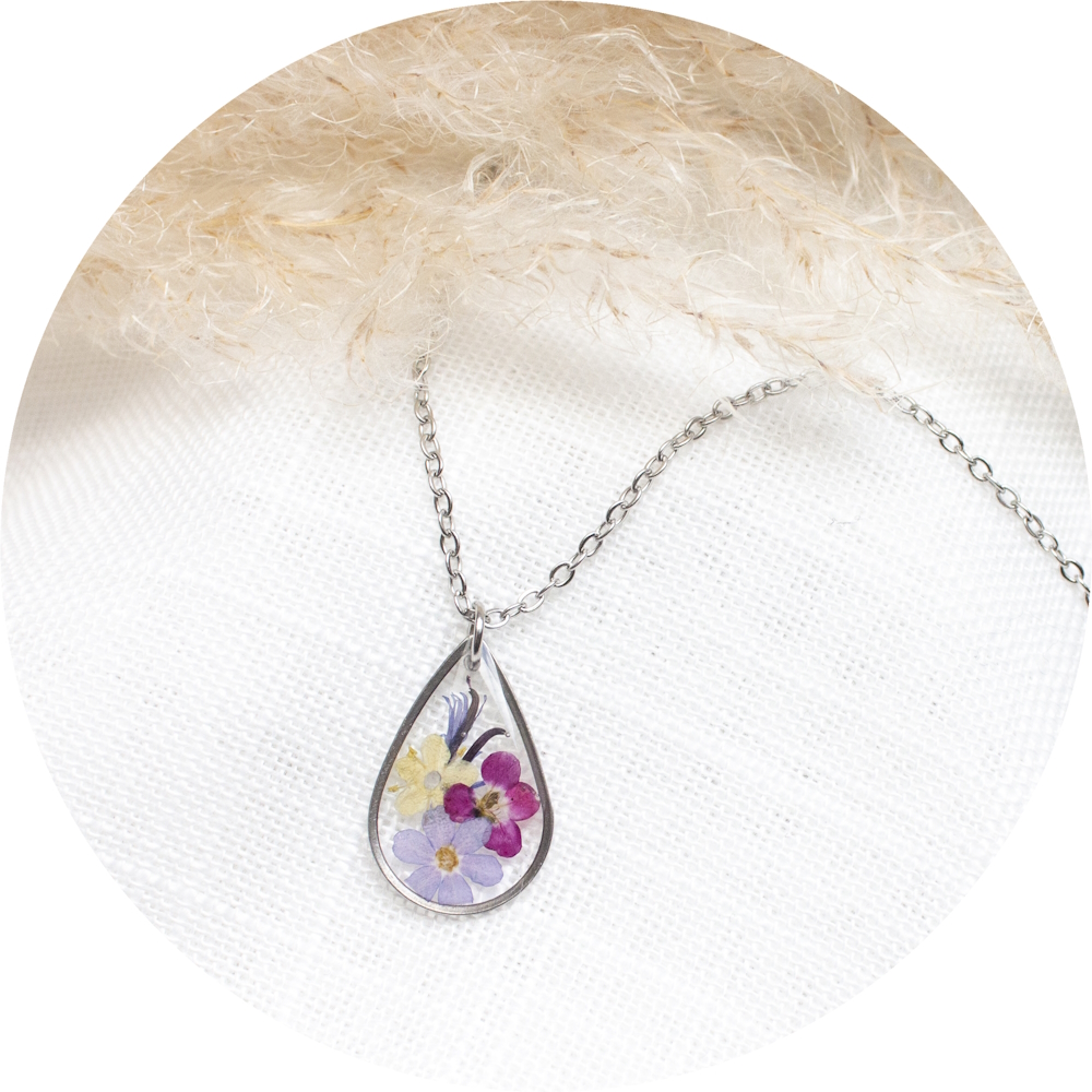 Het beste is om het sieraad op een donkere plek te bewaren, door het zonlicht kunnen de droogbloemen verbleken of verkleuren.