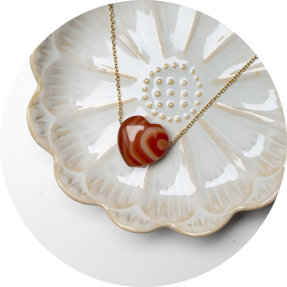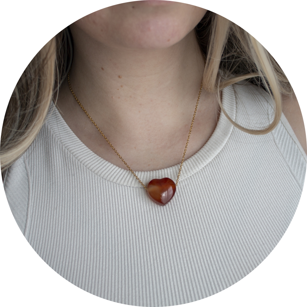 Deze carneool hanger heeft de vorm van een hartje en maakt je outfit helemaal compleet.