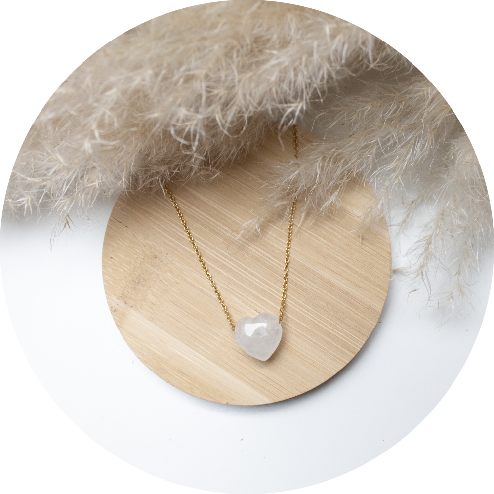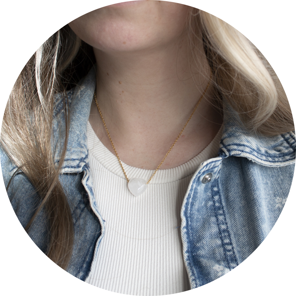 Deze bergkristal hanger heeft de vorm van een hartje en maakt je outfit helemaal compleet.