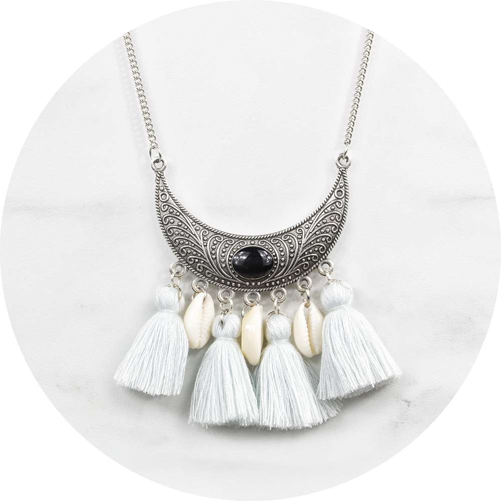 Ketting maan kwastjes licht grijs/zilver