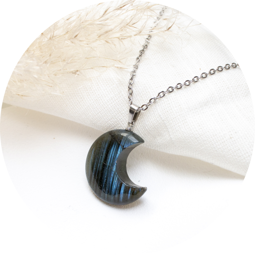Hoe leuk is deze ketting met edelstenen labradoriet hanger in maan vorm.