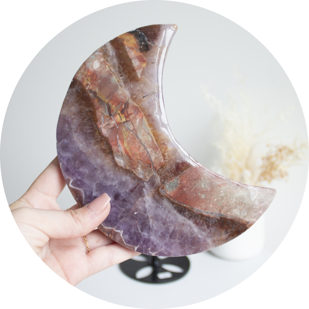 Mexicaanse lace agaat / amethist maan op standaard nr.2
