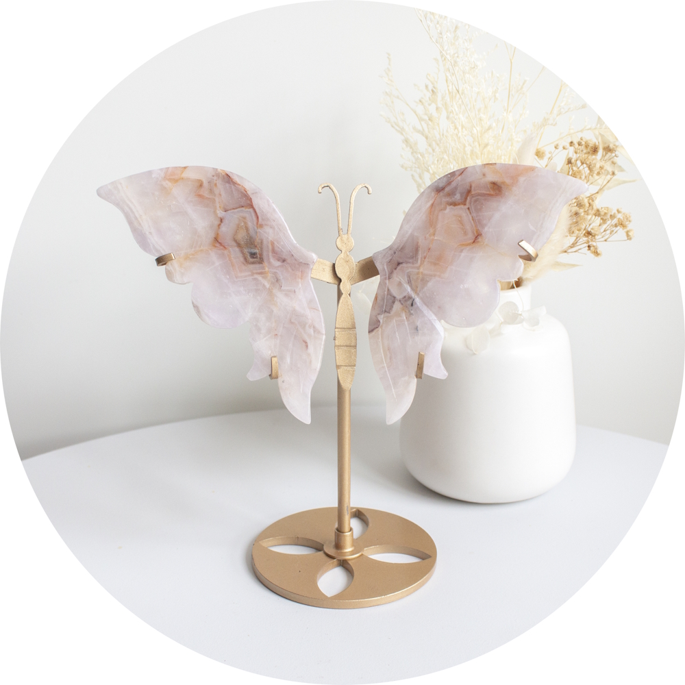 Specificaties Mexicaanse lace agaat / amethist vlinder op standaard nr.273: