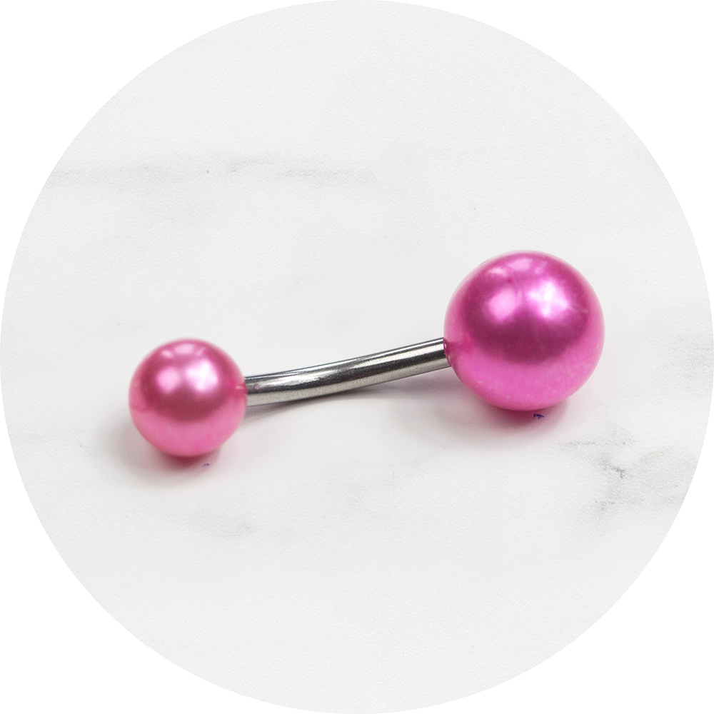 Deze opvallende roze parel navelpiercing is een echte eyecatcher!