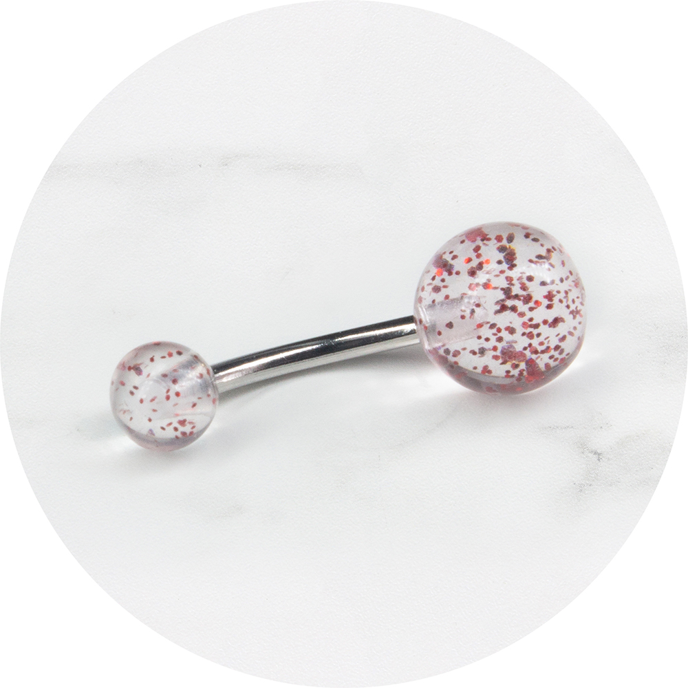 Deze opvallende rode glitter navelpiercing is een echte eyecatcher!