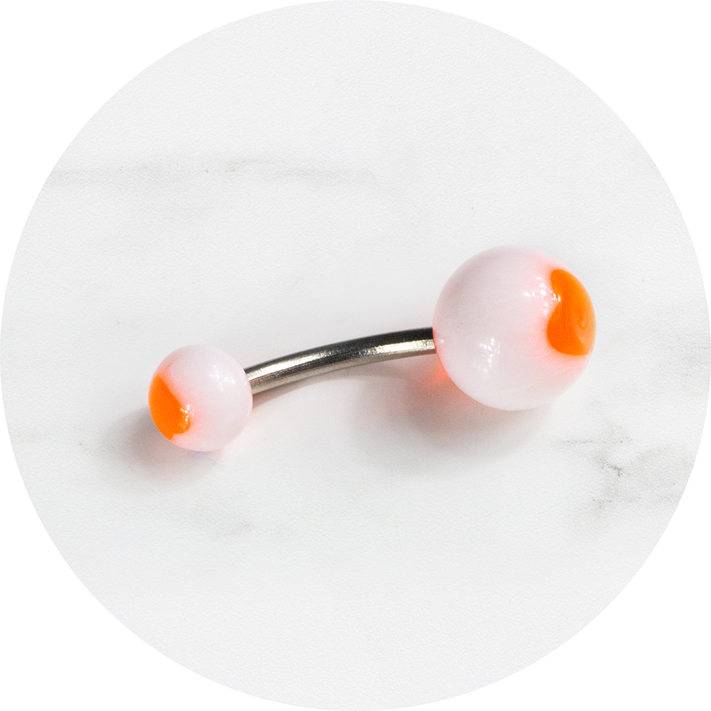 Deze opvallende wit met oranje hart navelpiercing is een echte eyecatcher!