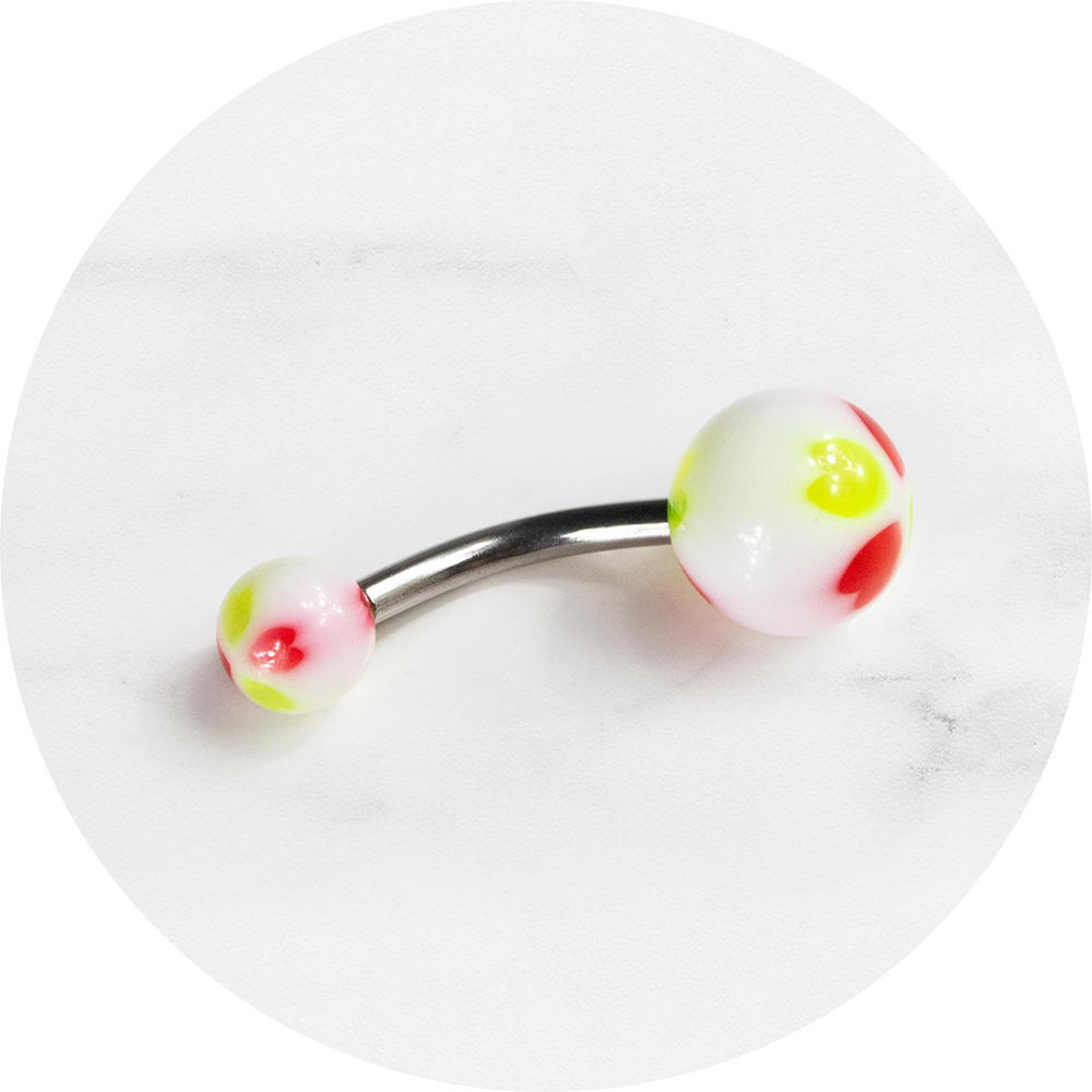 Navelpiercing acryl klaver rood/geel