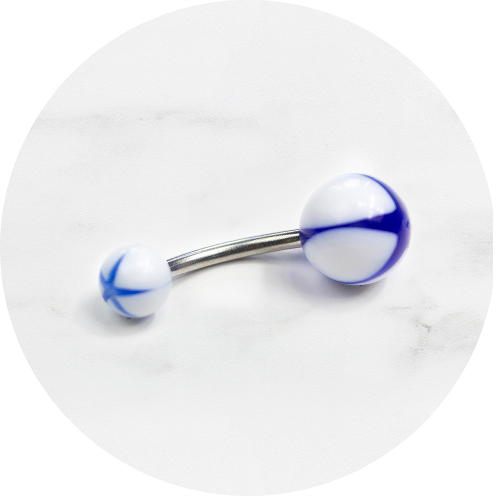 Deze opvallende wit met blauwe ster navelpiercing is een echte eyecatcher!