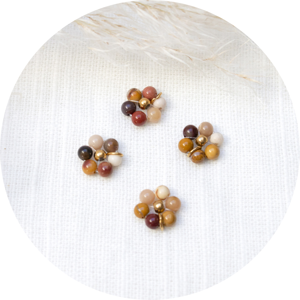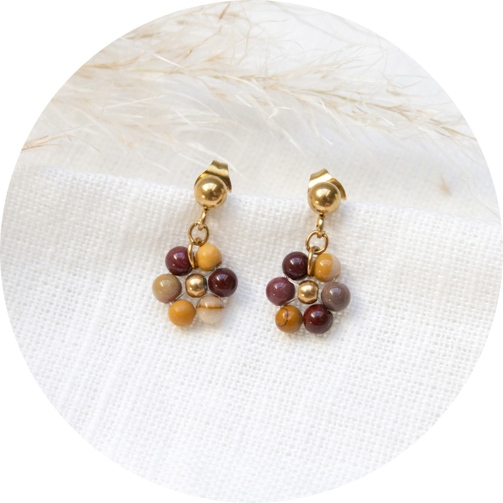 Hoe schattig zijn deze bloem oorbellen gemaakt van mookaiet kraaltjes.
