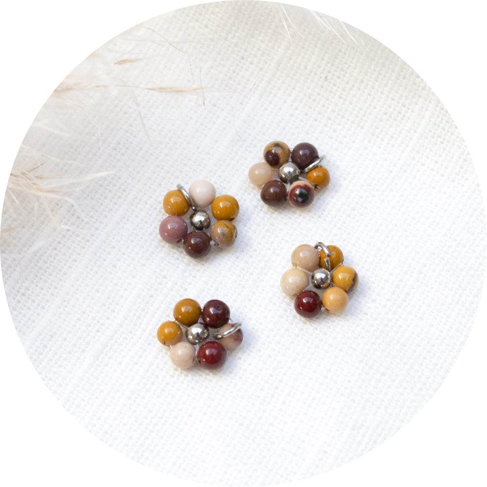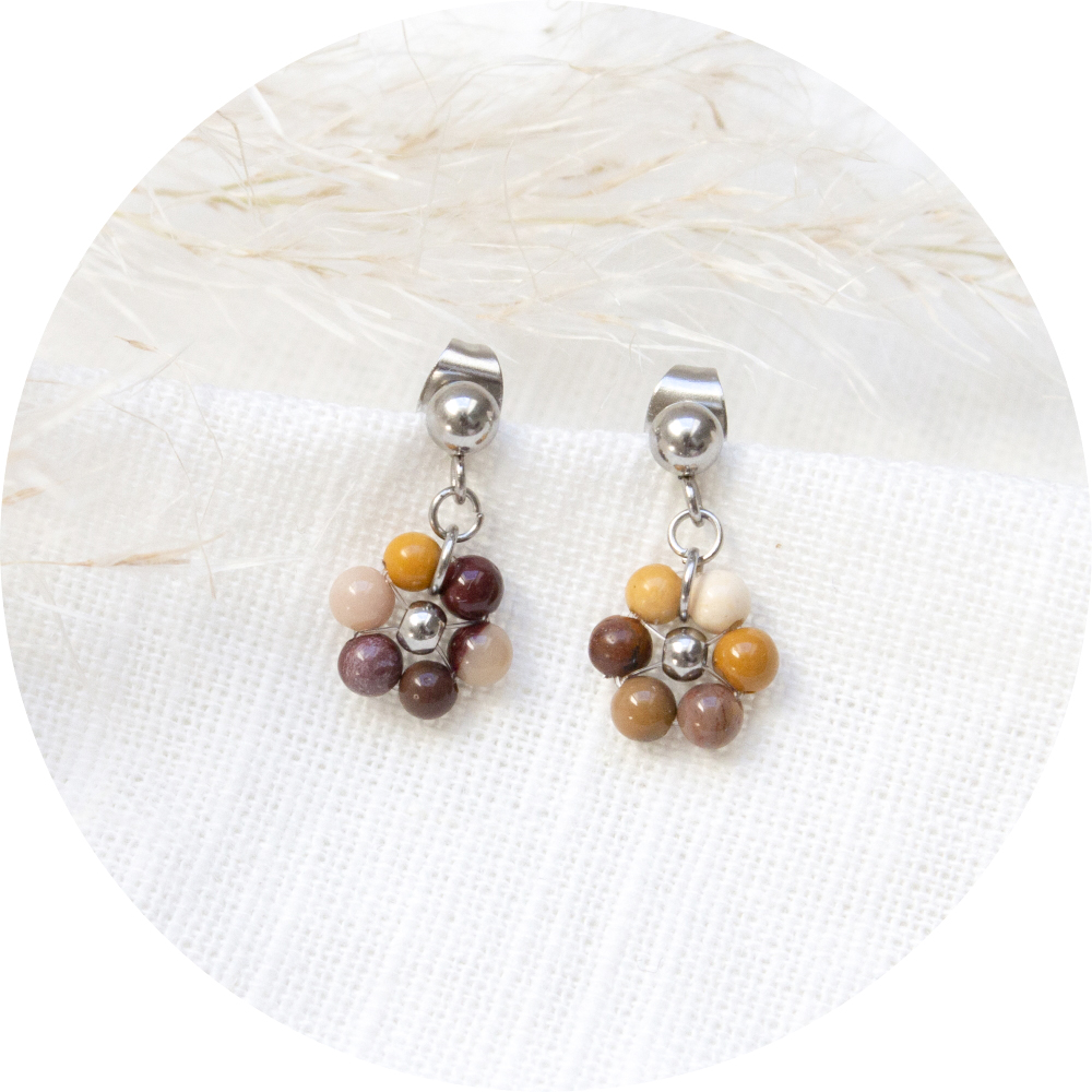 Hoe schattig zijn deze bloem oorbellen gemaakt van mookaiet kraaltjes.