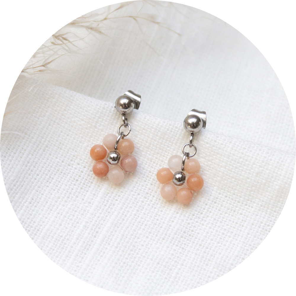 Hoe schattig zijn deze bloem oorbellen gemaakt van roze aventurijn kraaltjes.