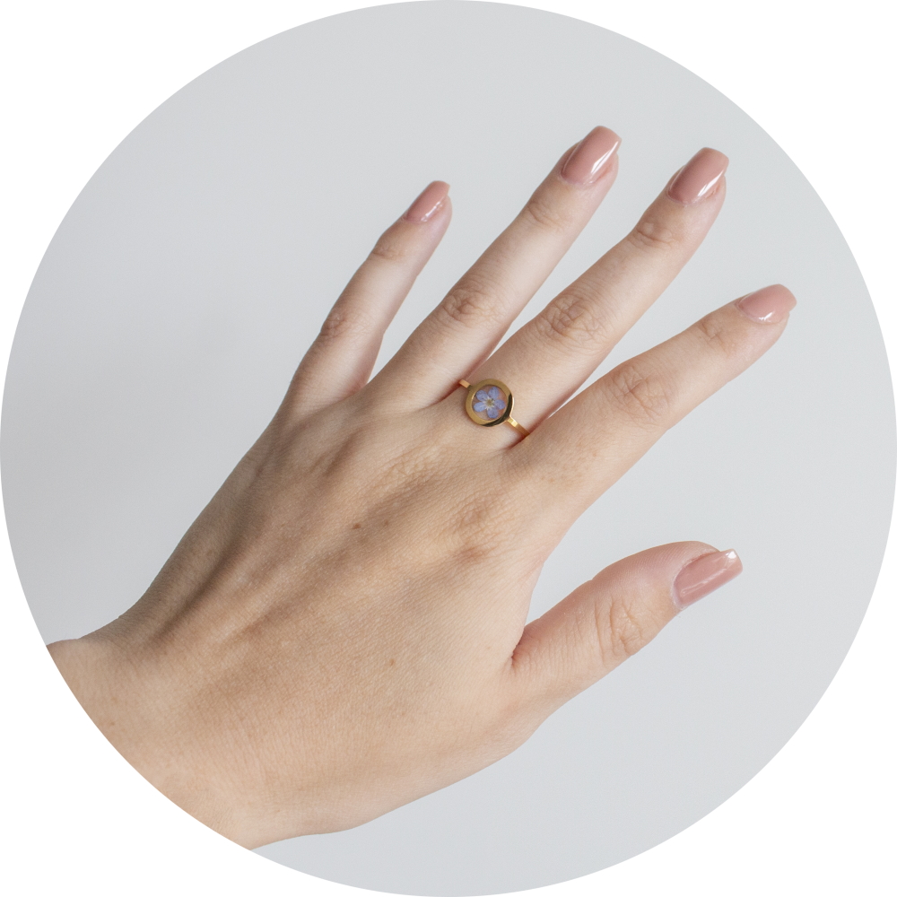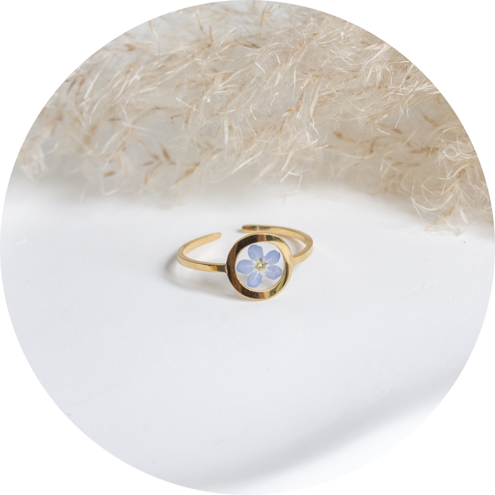 Het bijzondere aan deze ring is dat het verwerkt is met een echt gedroogd bloemetje.