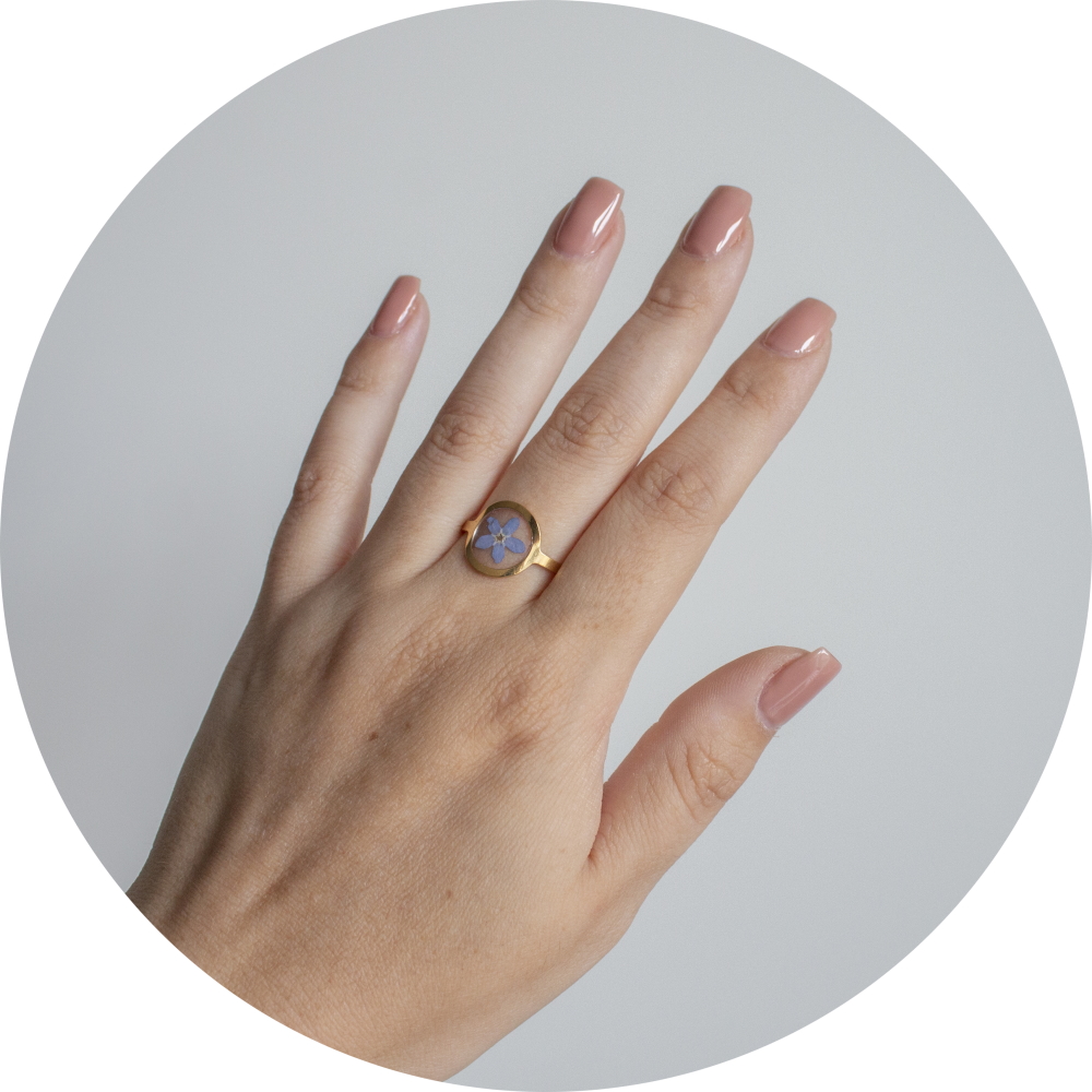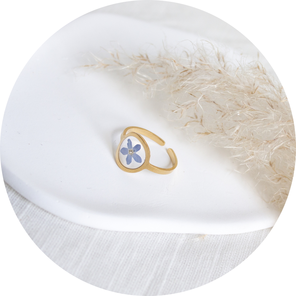Het bijzondere aan deze ring is dat het verwerkt is met een echt gedroogd bloemetje.