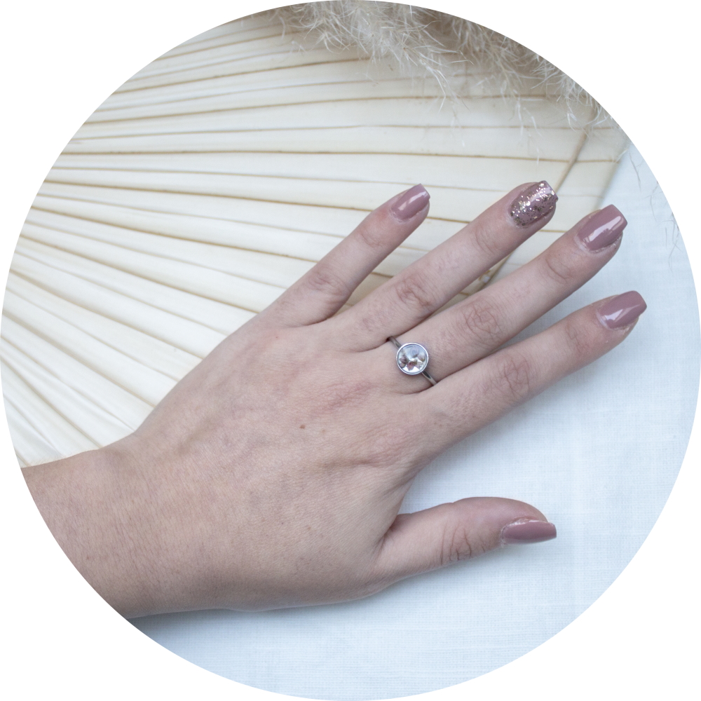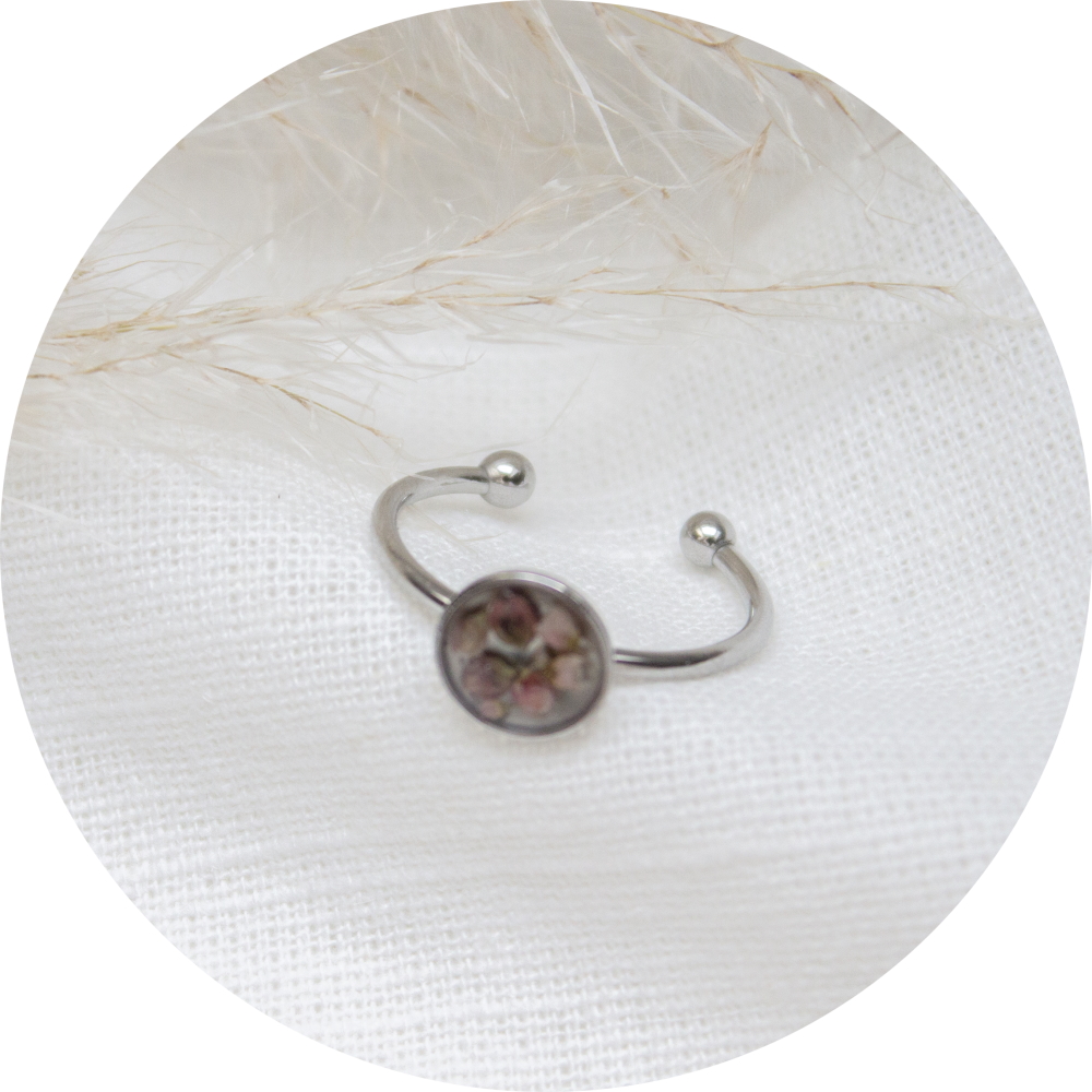 Het bijzondere aan deze ring is dat het verwerkt is met echte gedroogde bloemetjes.