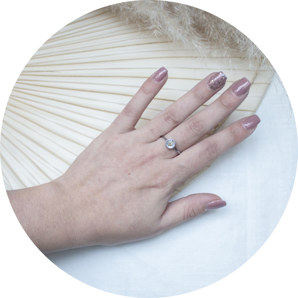 Het bijzondere aan deze ring is dat het verwerkt is met een echt gedroogd bloemetje.