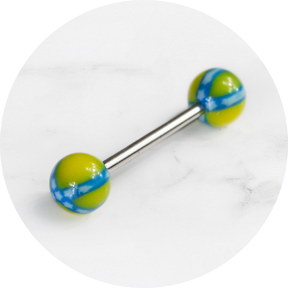 Tongpiercing acryl bal geel/blauw