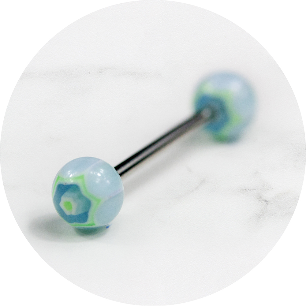 Tongpiercing acryl spinnenweb blauw/groen