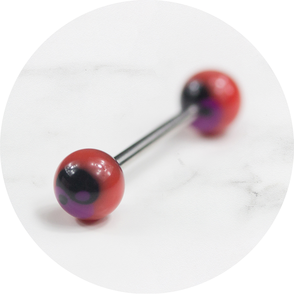 Deze opvallende rode Yin Yang tongpiercing is een echte eyecatcher!